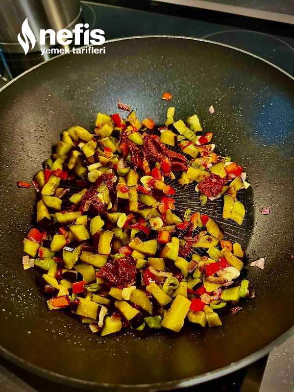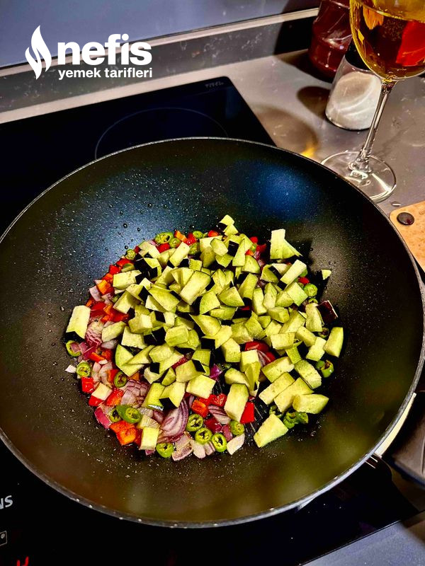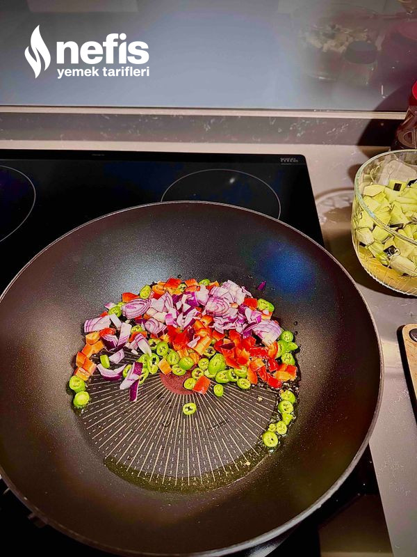 - Öncelikle wok tavamızı ısıtıyoruz, tüm sebzelerimizi soğan ve sarımsak dahil sotelik doğruyoruz.