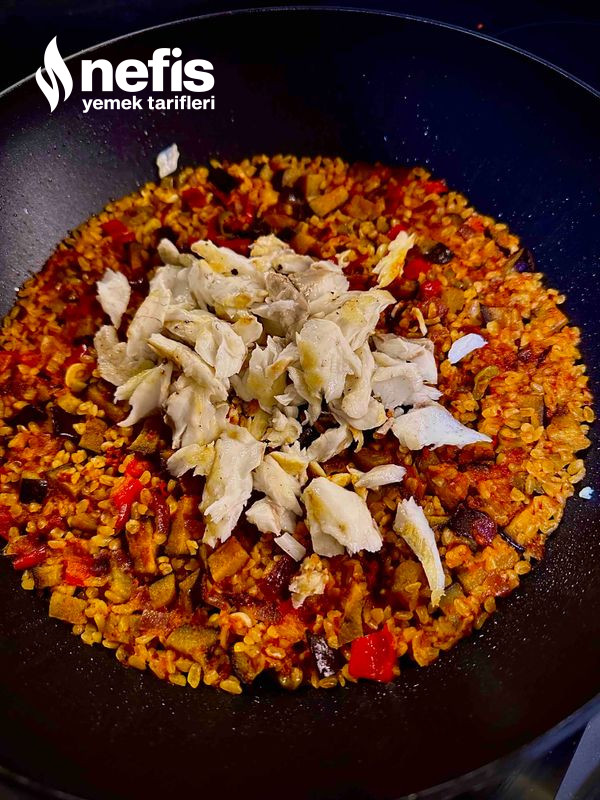 - Balığın kalan suyunu da verip bulguru pişiriyoruz.