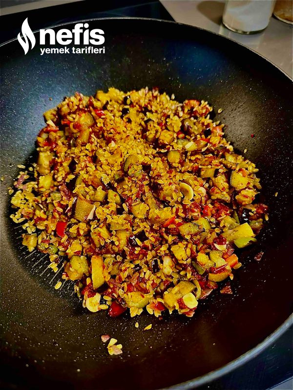 - Bulgurları da ekledikten sonra, bulgurlar yahut firik çatlayana kadar yaklaşık 4 dakika tekrar sebzelerle bir arada soteliyoruz.
