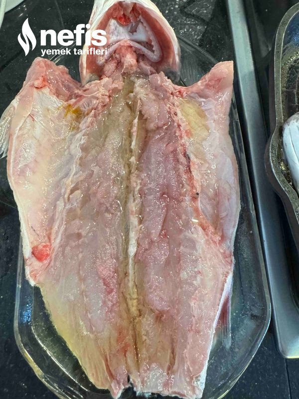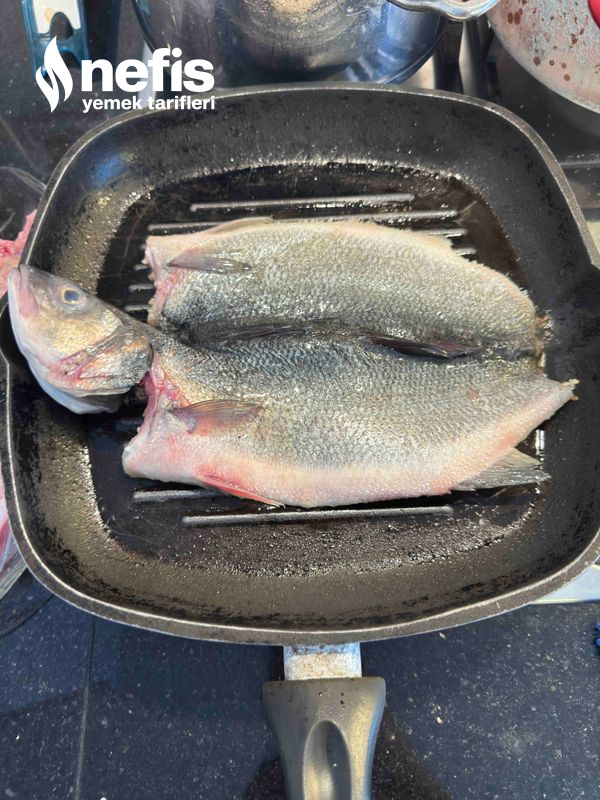 1. Temizlenmiş levreğimizin orta kemiği ( kılçığı) çıkartıltıldıktan sonra kızgın bir yapışmaz tavada iç kısmı sıcak yüzeye gelecek halde mühürlüyoruz.