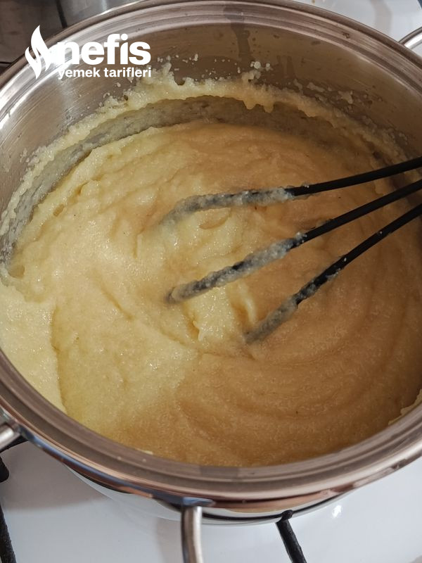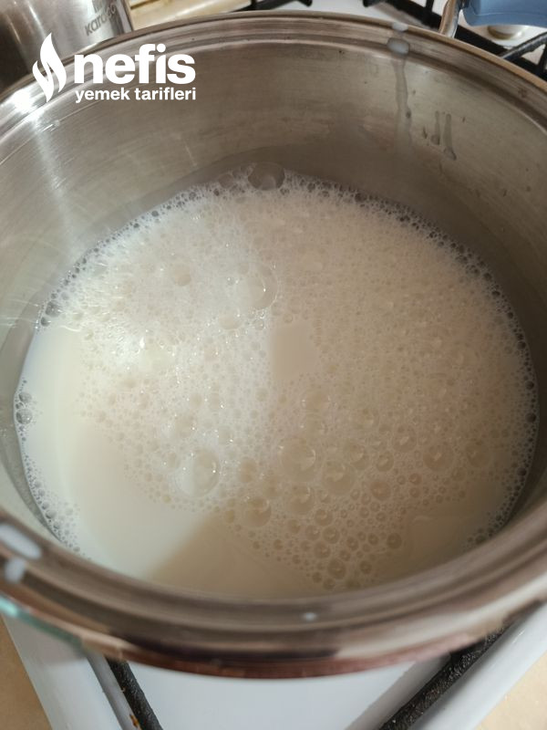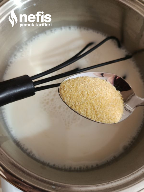 1. Süt, şeker ve irmiği tenceremize alalım ve karıştıralım. Kıvam aldıktan sonra tenceremizi ocaktan alalım.