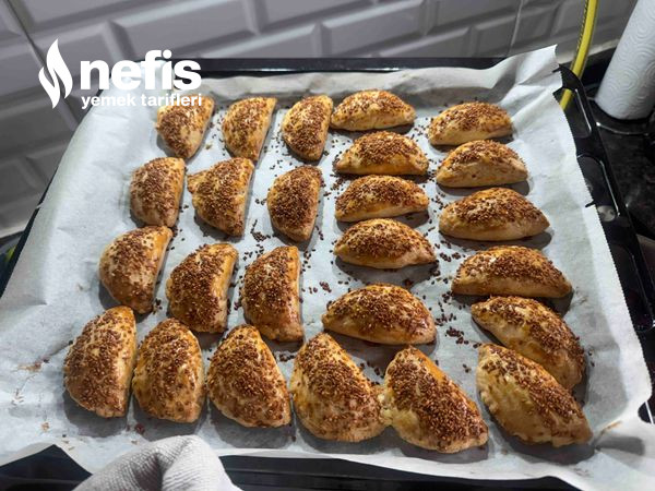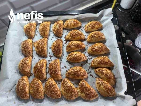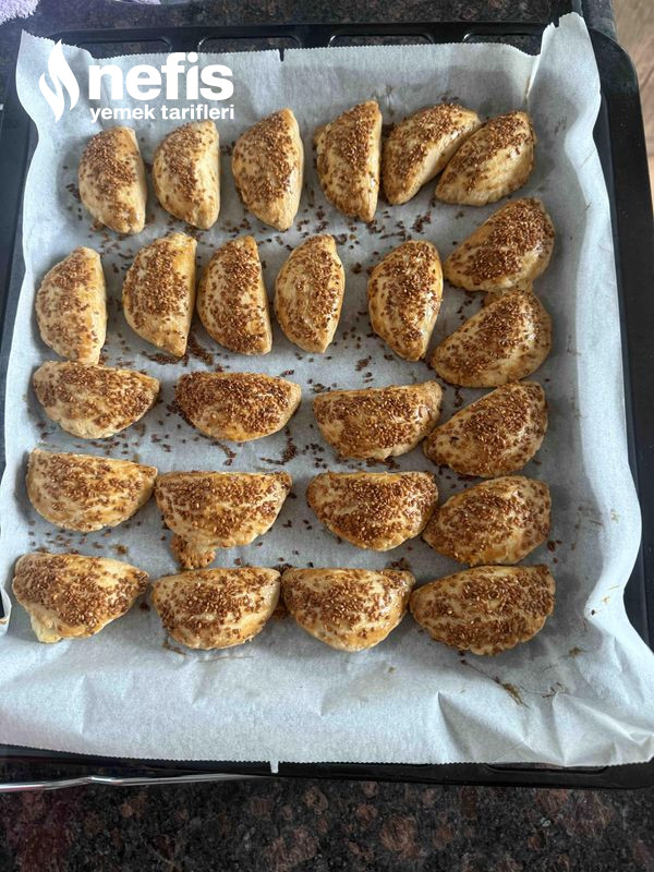 3. Poğaça hali verdiğimiz hamurlarımızı tepsiye dizip üzerine yumurta sarısı sürüp susam serpiştirelim.