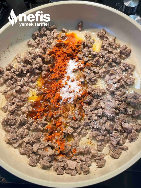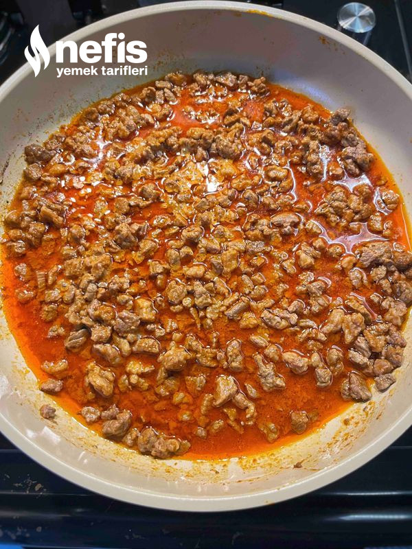 12. Et suyunu biraz çekince toz biberi, tuzunu ve yağını ek edelim. 5 dakika kadar daha pişirip altını kapatalım.