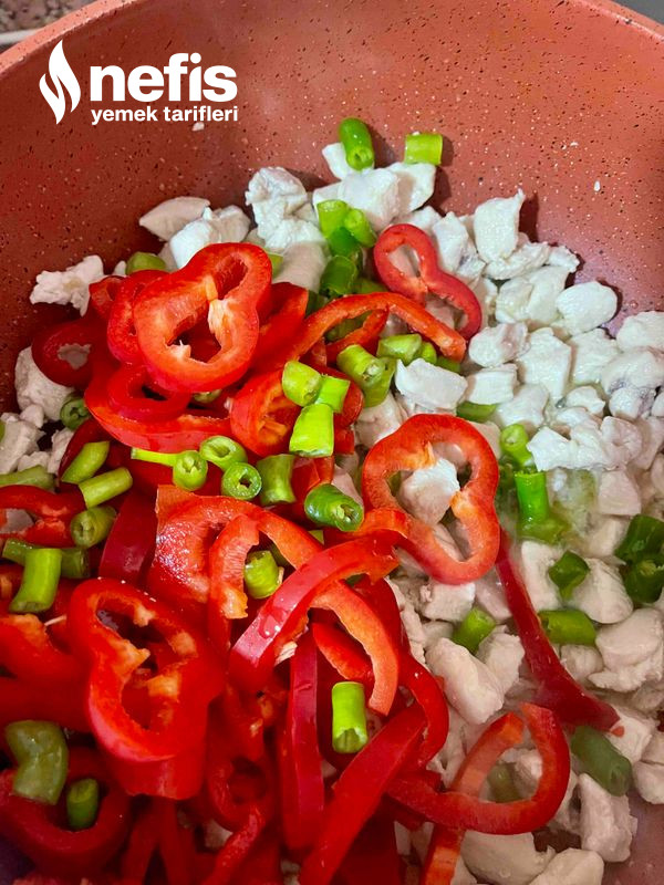 - Ardından doğradığımız biberlerimizi ekliyoruz. Karıştırıp kapağını kapatalım.