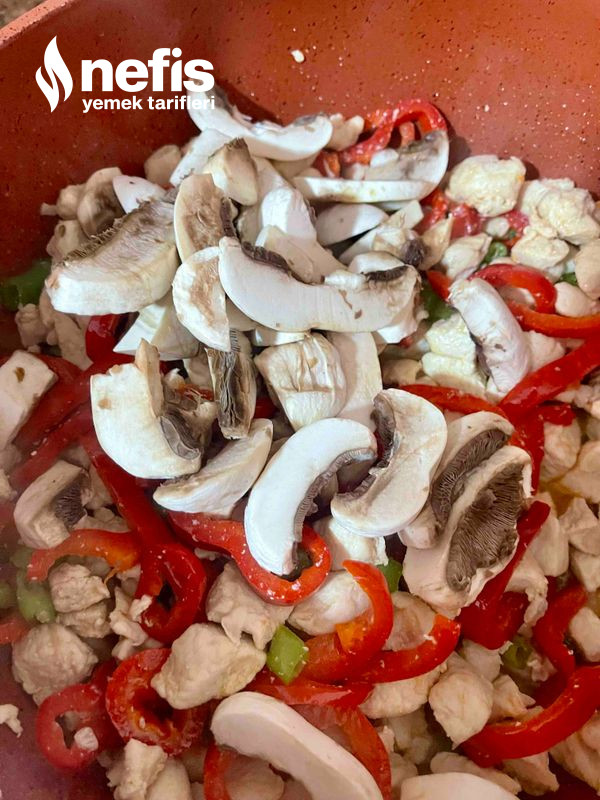 - Biberler hafif yumuşamaya başladığında(yaklaşık 3-4 dakika sonra) mantarlarımızı ekliyoruz. Biraz karıştırıyoruz.