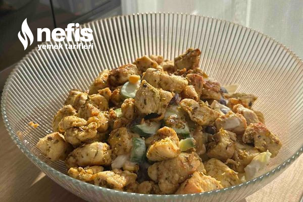 - En son tavukları salatanın üzerine koyalım ve servis edelim.