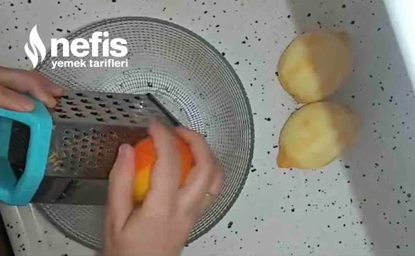 - Limonların kabukları rendelenir beyaz kısma gelmeyecek portakal da birebir form kabuğu rendelenir.