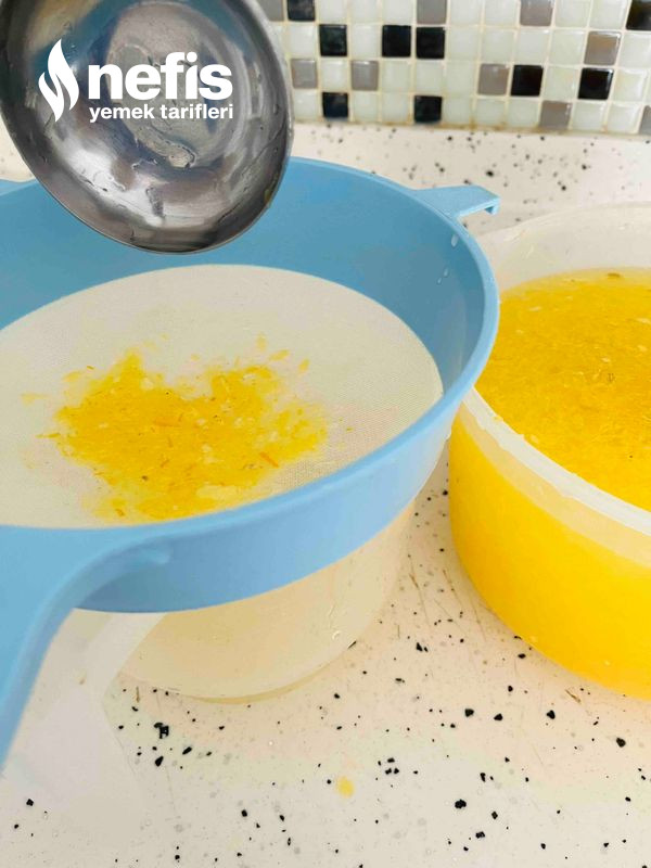 - Limonlar ikiye bölünüp suyu sıkılır portakal da birebir form limon ve portakal suyu hazırlanan şekerli kabuklara eklenir bir gece buzdolabında beklenir (eğer bir gece beklemek istemiyorsanız 2 saat bekletmeniz kâfi olacaktır)
