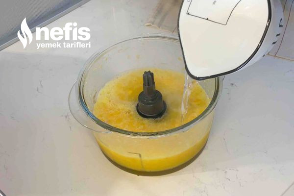 - Üzerine 1 su bardağı şeker ve 1 su bardağı suyu ek edip parçalayıcıdan geçirelim.
