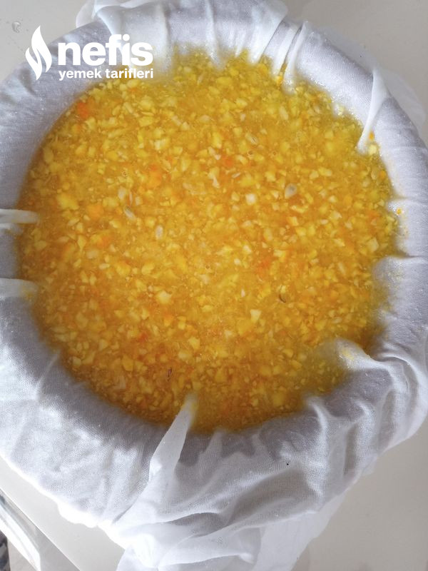 - Karışımı bir tülbent ya da ince süzgeçten süzerek posasından ayırın.