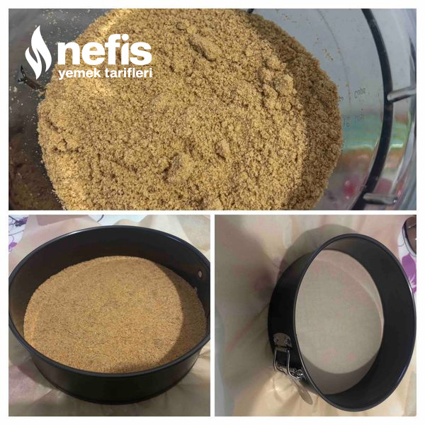 5. Kelepçeli kalıba hazırladığımız bisküvi tabanının üzerine döküyoruz .