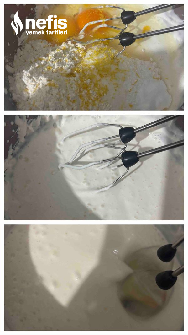 4. Yumurta ,şeker ,vanilya, un hepsini ekleyip güzelce çırpıp sıvı krema haline getiriyoruz.