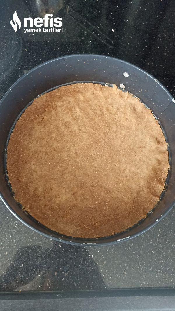 - Enfes bir tatlıya başlayalım 😍 Alt tabanı için burçak bisküvileri rondodan geçirelim. 24 cm kelepçeli kalıbın altına yağlı kağıt serelim.
