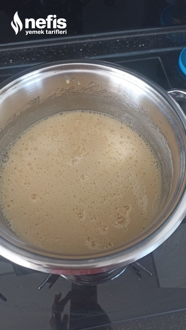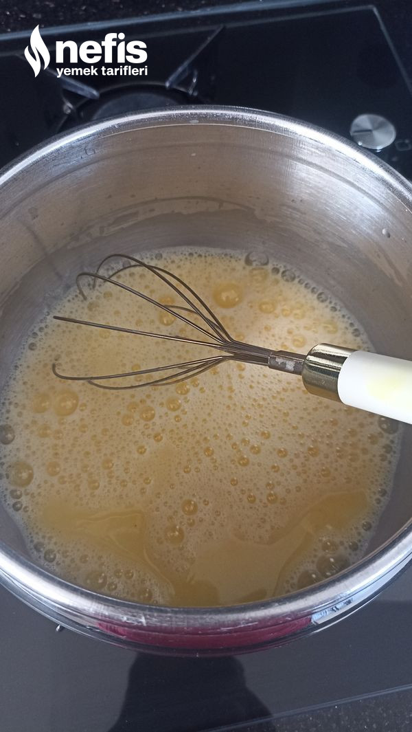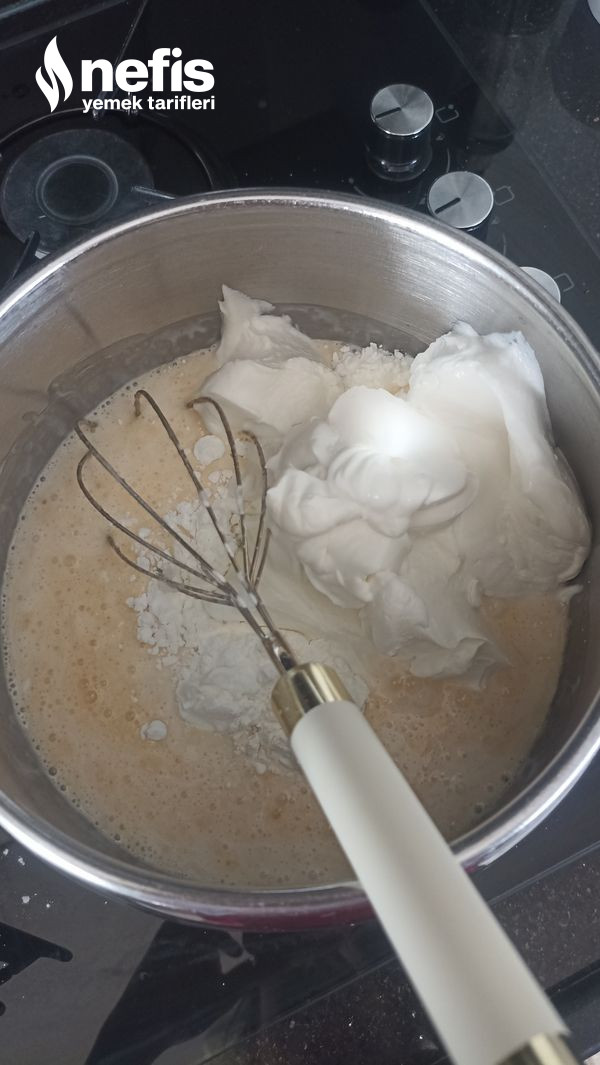 - Kaynayan bir kabın üzerinde benmari tarzı misali karıştırma kabında alttan gelen buhar ile köpük köpük oluncaya kadar karıştıralım. Bu süreç yaklaşık 15 dk kadar sürüyor.