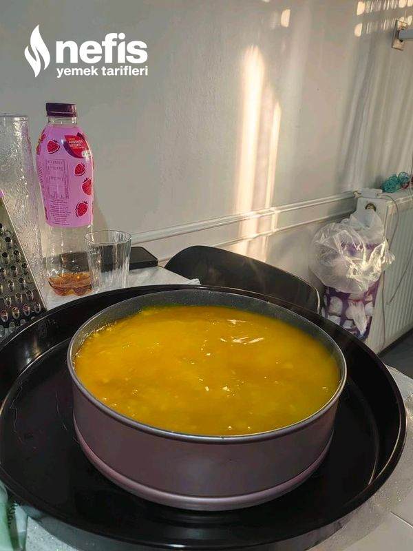 13. Soğuyan sosumuzu tatlımızın üzerine gezdirelim ve 1 gece dinlenmeye bırakalım. Şayet vaktiniz yoksa bir kaç saatte dinlendirebilirsiniz.
