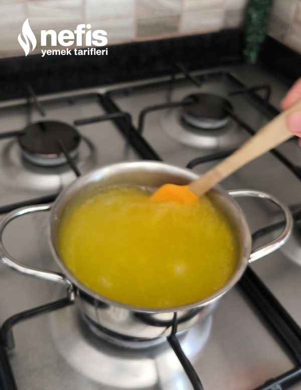 - Tencereye limon suyu, şeker, yarım su bardığında açtığınız nişasta, limon kabuğu rendesi ve zerdeçalı ekleyip yeterlice çırpın ve yoğunlaşıp fokurdayana kadar pişirin.