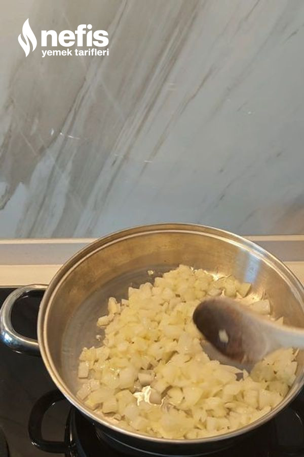 - Tavaya zeytinyağı alın. İnce doğranmış soğan ve sarımsağı ekleyip pembeleşene kadar kavurun.
