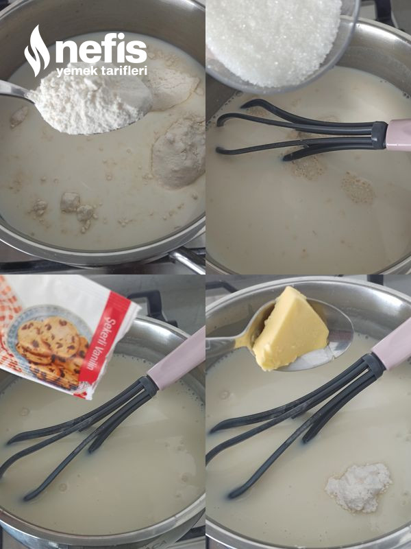 - Bu ortada krema için tüm gereçleri tenceremize alalım ve kaynatalım.