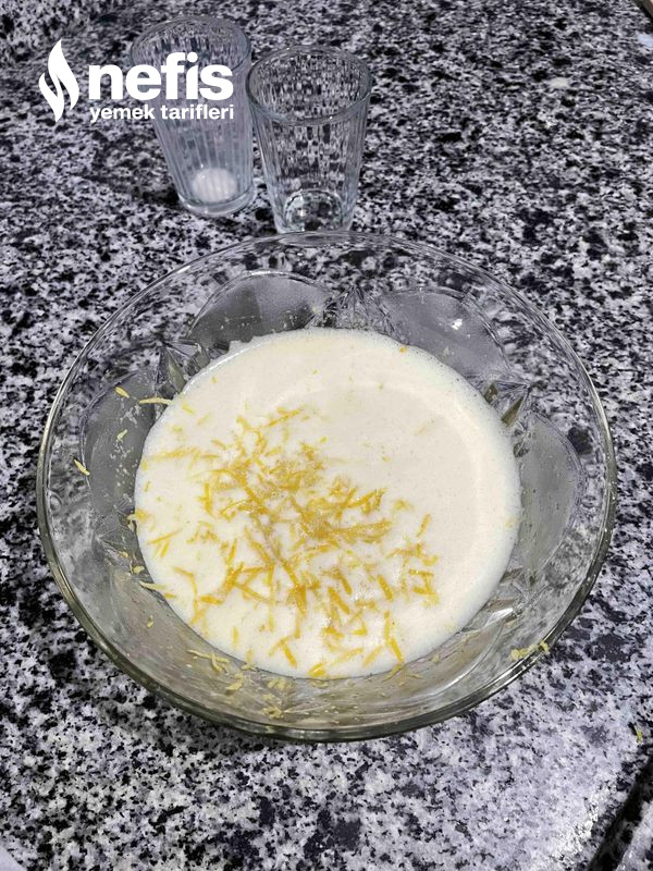 - Sıvı yağ, süt limon suyu ve limon kabuğu rendesini ekleyip tekrar çırpalım.