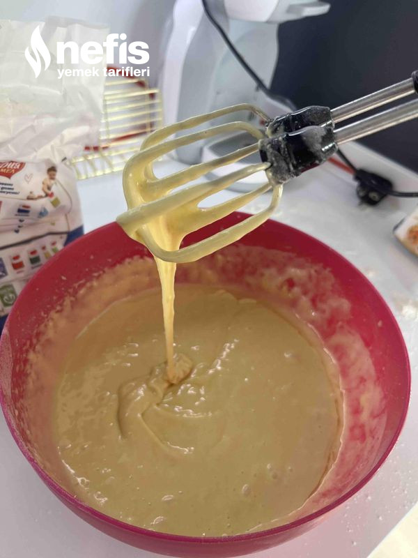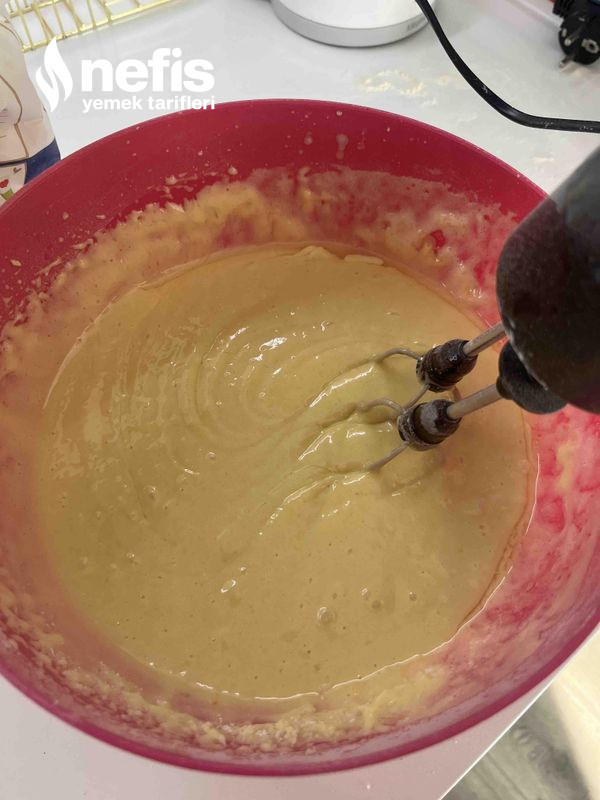 2. Yağ, yoğurt, un, kabartma tozu, vanilin ekleyelim hepsini birlikte güzelce çırpalım.