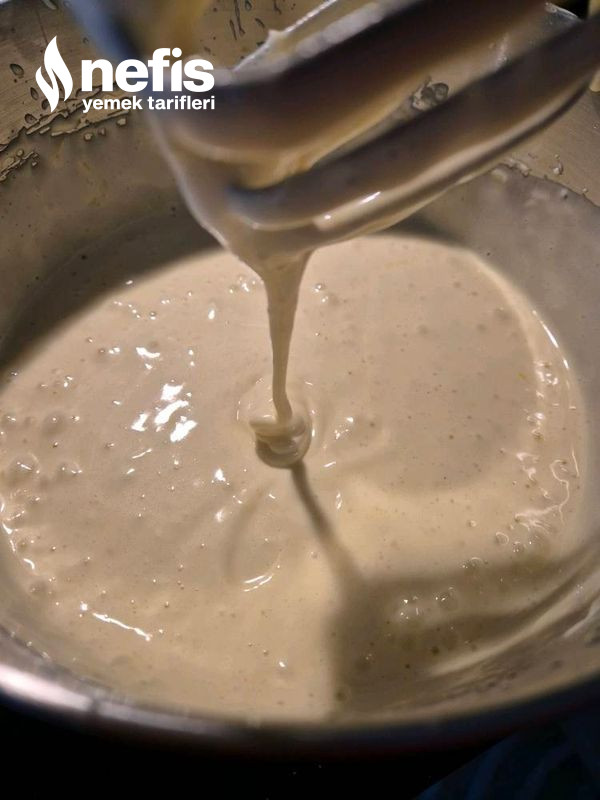 2. Sıvı yağ ve sütü ekleyip, tekrar çırpıyoruz.