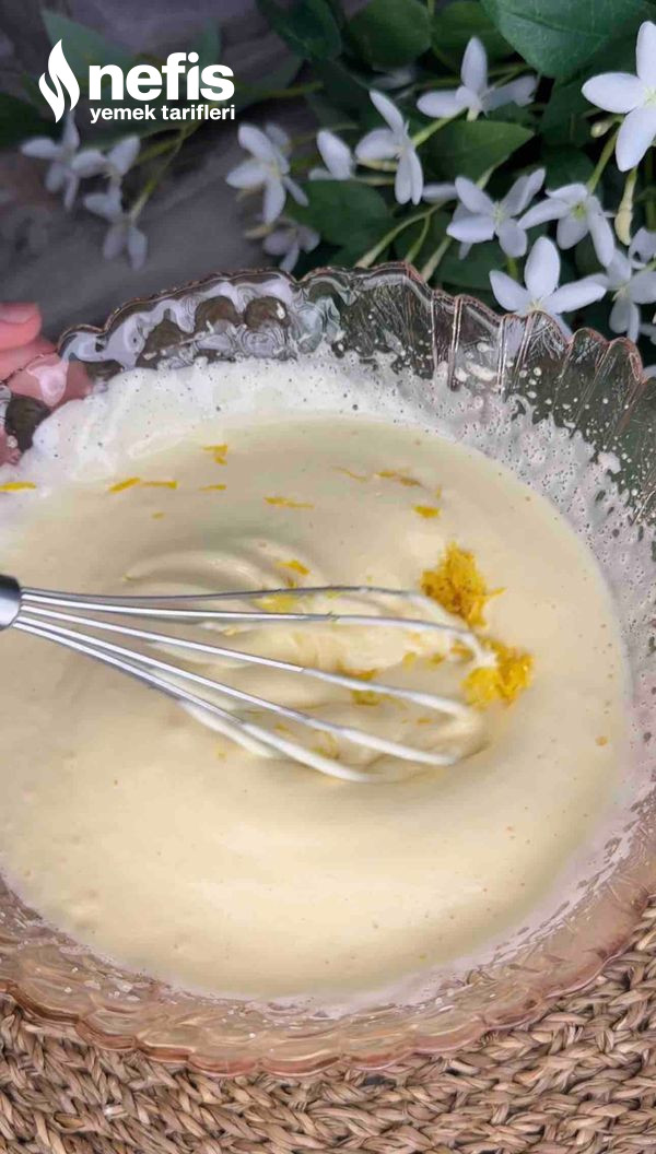 1. Yumurta ve şekeri üç dakika boyunca çırpıyoruz akabinde sıvı gereçleri ekliyoruz ve daha sonra limon kabuğunu ekliyoruz ve karıştırıyoruz. Daha sonra unu ekleyip, karıştırmaya devam ediyoruz.