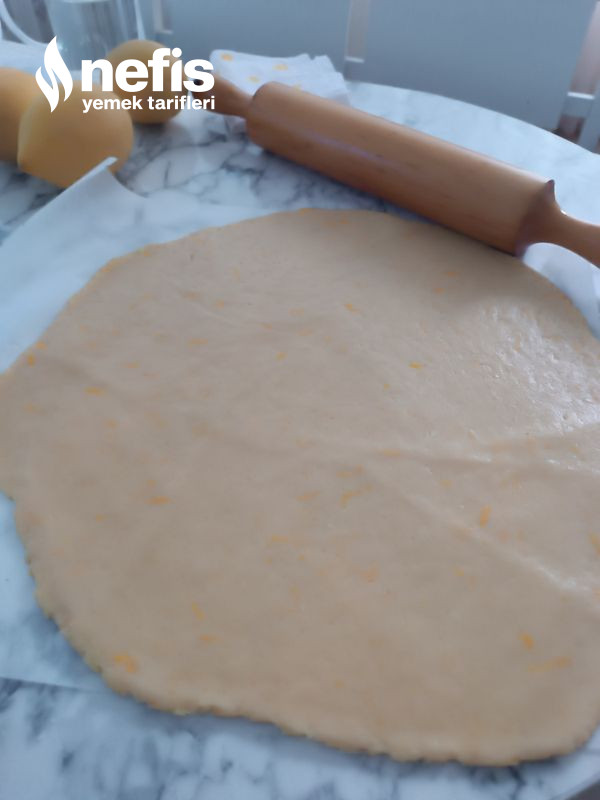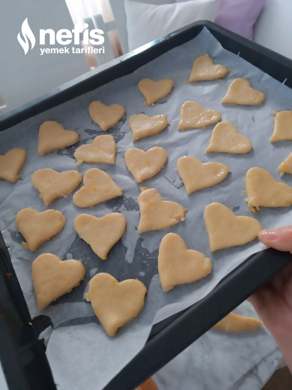 - Hamuru yağlı kağıtla ortasında açalım istediğiniz bir kalıpla form tepsiye dizelim, evvelden ısınmış 175 derece fırında altı hafif kızarıp üzeri kızarmadan 15 dk pişirelim.