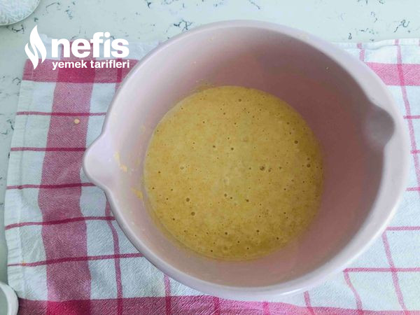 5. Üzerine süt ,sıvı yağ,irmik ekleyip çırpalım.