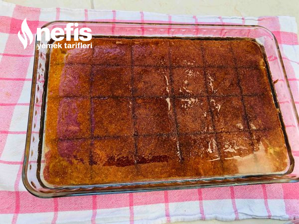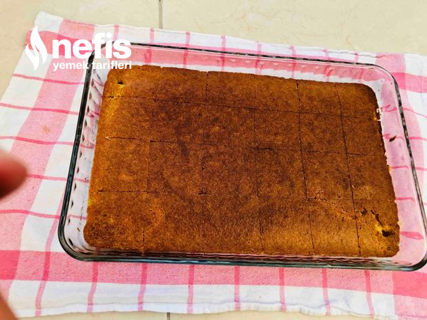 8. Pişen kekimizin birinci sıcağı çıktıktan sonra dilimleyip şerbeti üzerine dökelim.
