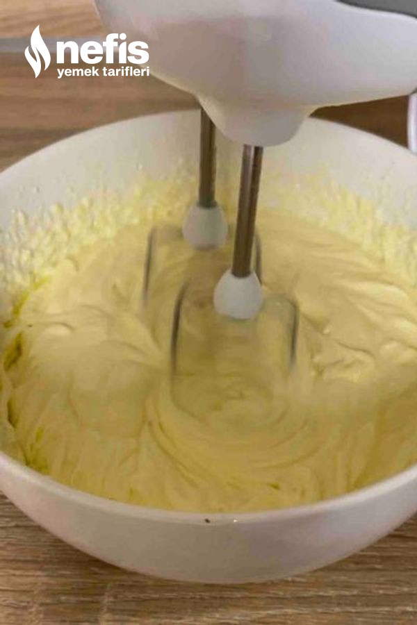 7. Labne peyniri, sıvı krema ve şekeri bir kapta çırpın.