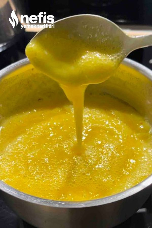 1. Küçük bir tencereye şeker limon suyu, yumurta, zerdeçal ve nişastayı alarak düzgünce çırpın, orta ateşte daima karıştırarak pişirin.