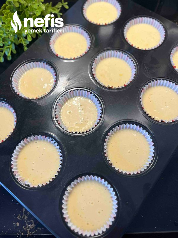 5. Muffin kalıplarına pişirme kağıdı koyup, kalıbın yarı hizasına kadar kek harcından koyalım.