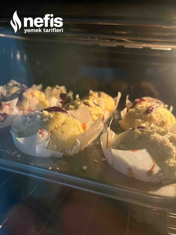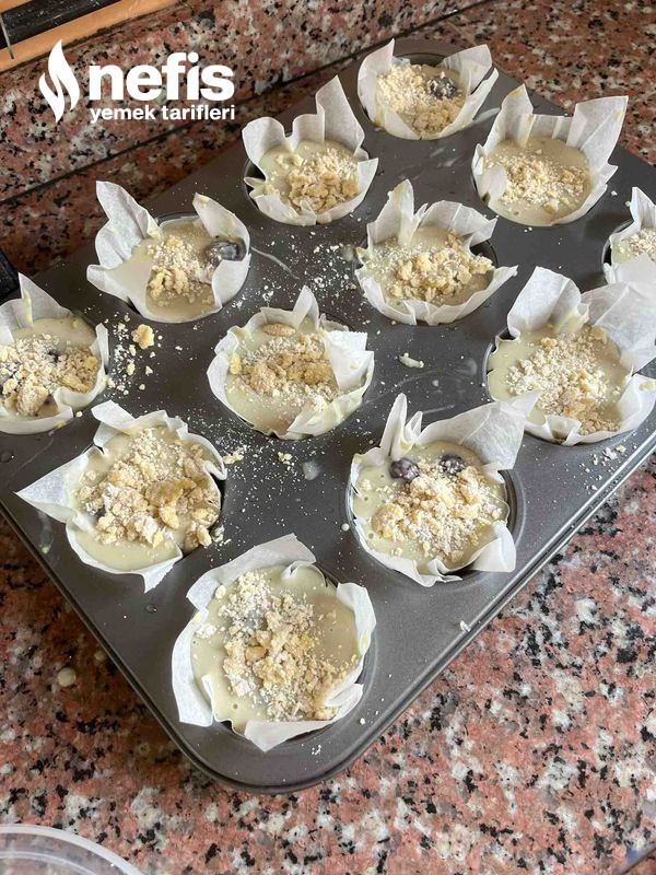 - Üzerine crumble eklemek isterseniz bir modül tereyağ ve biraz unu parmaklarınızla birleştirerek döküntülü bir kurabiye hamuru elde etmiş olursunuz bunu da her bir muffinin üstüne biraz biraz dökebilirsiniz.