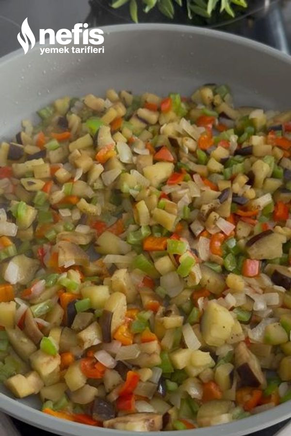 - Uygun bir tencereye sıvı yağını alalım, üzerine doğranmış zerzevatları ekleyip kavuralım.