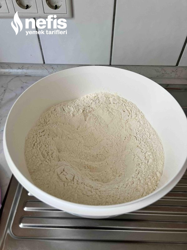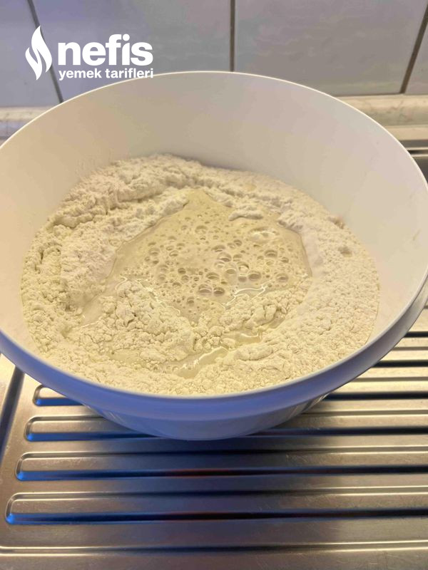 - Daha sonrasında kabaran mayayı içine boşaltıp ılık suyla yoğurmaya başlayalım .