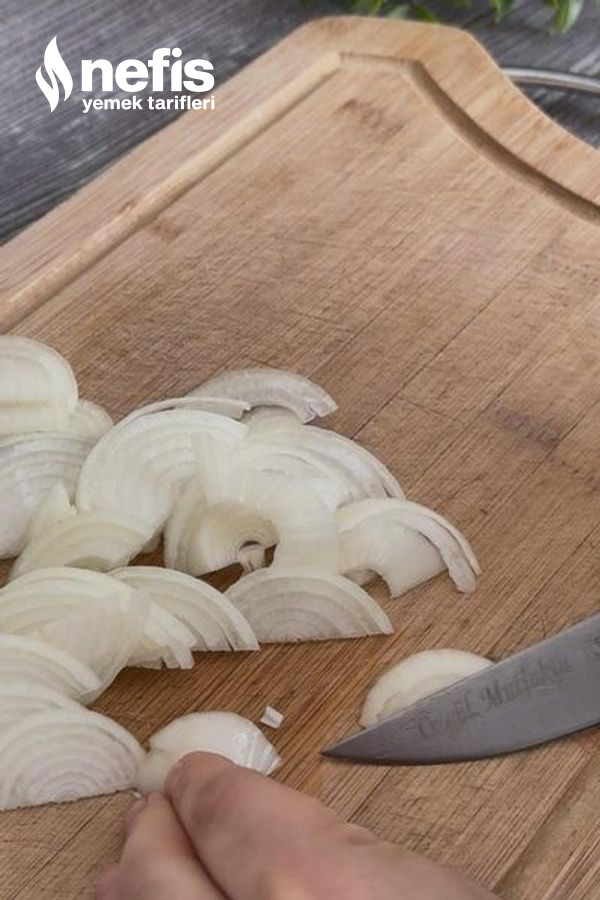 - Öncelikle soğanları piyazlık doğrayalım ve bir kabın içerisine alalım.