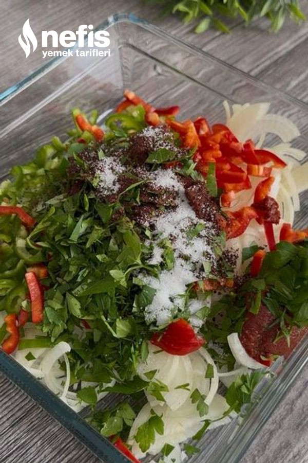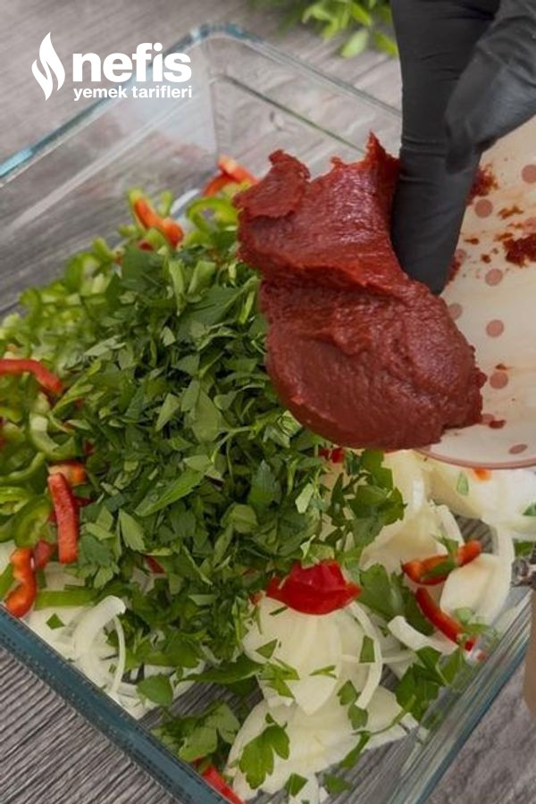 - En sonunda üzerine salçaları, nar ekşisi, zeytinyağ, sumak ve tuzunu da ekleyip elinizle güzelce karıştıralım.