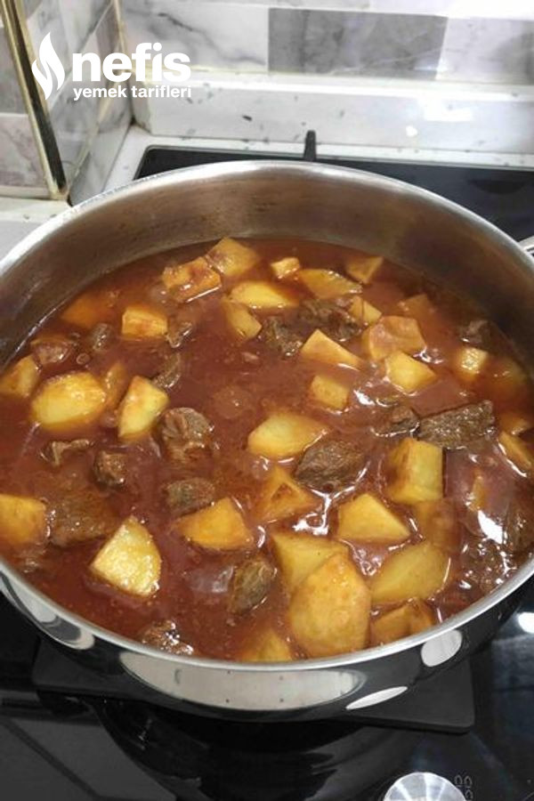 9. Pişen etlere patatesleri ek edip 5-10 dk daha birlikte pişirelim.