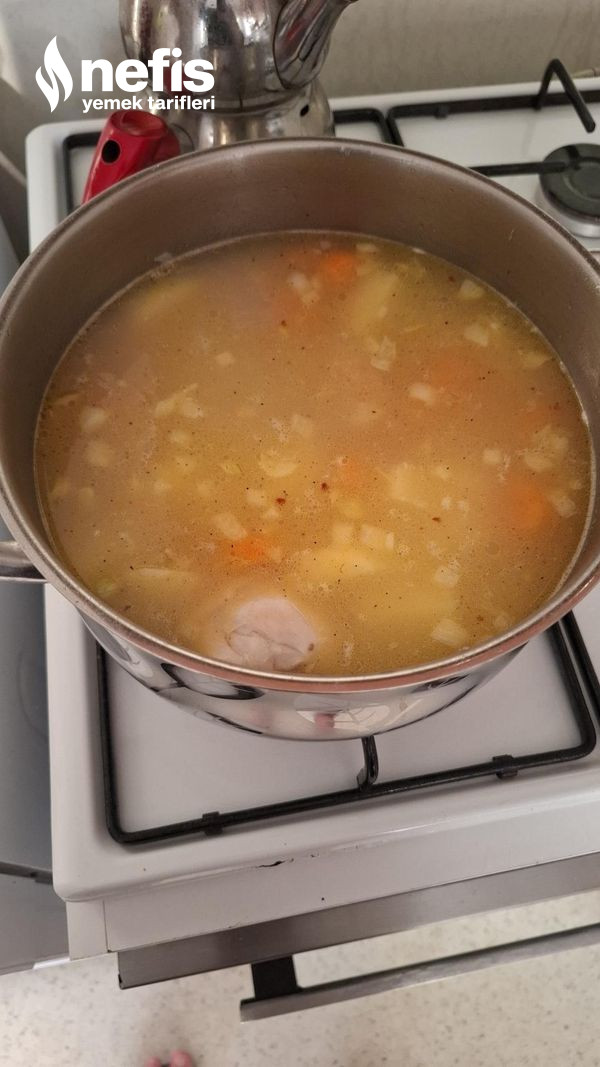- Tencereden 1 kepçe tavuk suyunu tavaya alıp karıştırın (topaklanmayı önlemek için).