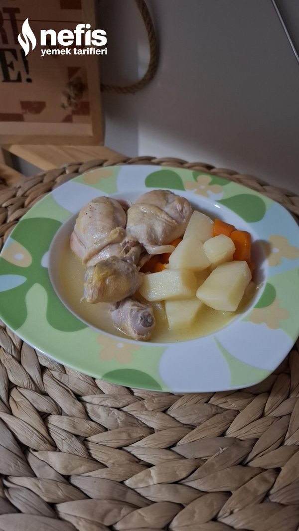 - Kısık ateşte, kapağı yarım kapalı biçimde 30 dk pişirin. Sebzeler yumuşayıp tavuk kemikten kolay ayrıldığında hazırdır.
