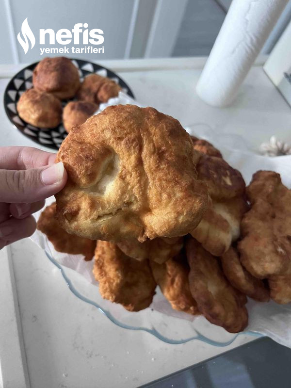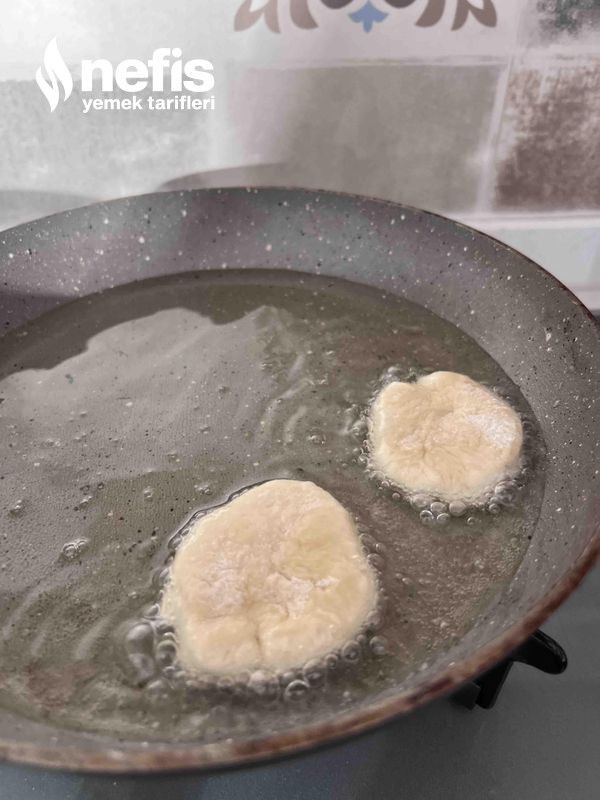 - Elimizle açıp kızgın yağda kızartıyoruz yada bir merdane yardımıyla açıp bardakla yuvarlak hal veripte pişirebilirsiniz.