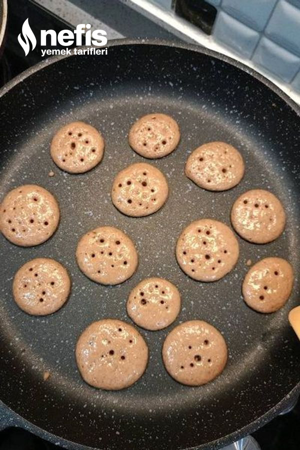 5. Yağsız tavada kesinlikle çok âlâ ısıtalım, akabinde orta göz ateşte en kısık ateşten biraz fazla biçimde lokmalık halde döküp (ben sıkma aparatıyla yaptım isteyen bir tatlı kaşığı ile de birebir boyuta ulaşabilir)üstü göz göz olana kadar pişirelim.