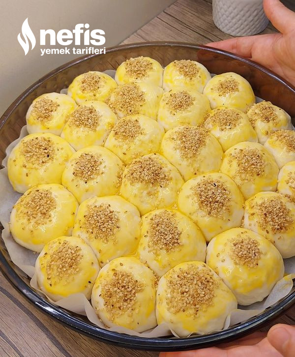 9. Tepsiye tüm hamurları dizdikten sonra üzerlerine yumurta sarısı sürüp susam serpelim.