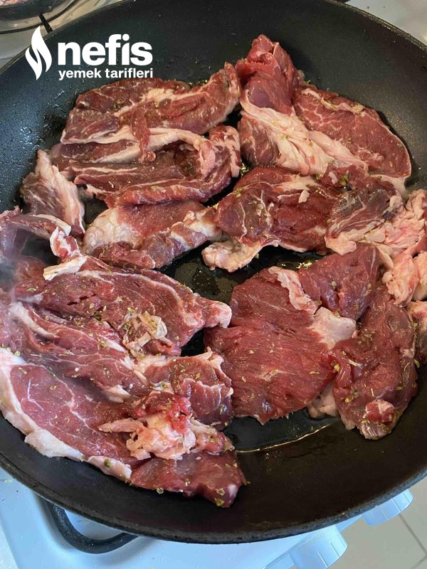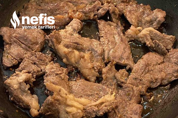 1. Öncelikle marine ettiğimiz etleri yağ koyduğumuz ve ısıttığımız tavada önlü gerili mühürlüyoruz.