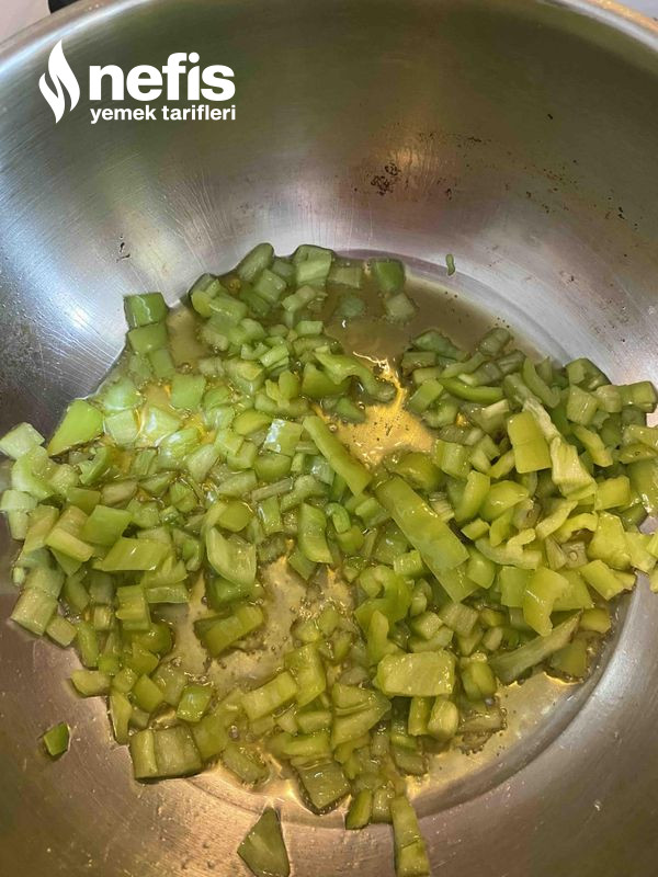 2. Ayrı bir tencerede yağı ve biberleri hafif kavuralım.