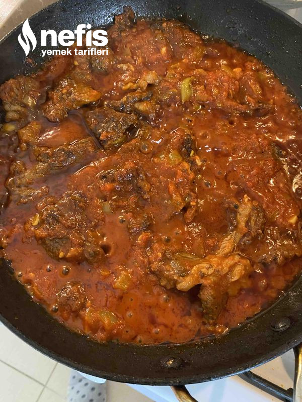 6. Mühürlenmiş olan etlerin üzerine hafif pişen sosu da dökerek kısık ateşte 20 -25 dk denetimli olarak pişirelim.