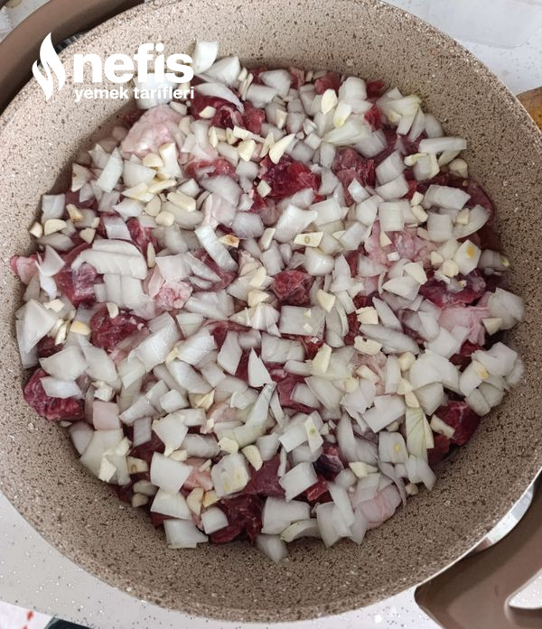 7. Tekrar kapağını kapatıp 1 saat kadar kısık ateşte pişmeye bırakalım.(pişirme esnasında suyunu denetim edip orta ara karıştıralım?).