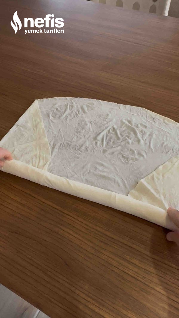 - Fırça yardımıyla yufkanın uç kısmını yapışması için suyla ıslatalım.