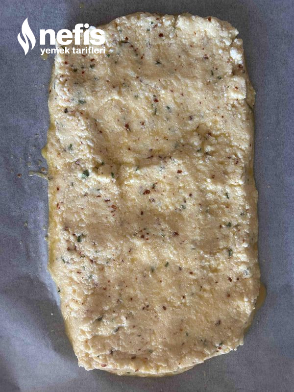 1. Lor, yumurta ve baharatları karıştırıp yağlı kâğıt serili tepsiye ince bir katman biçiminde sürelim.