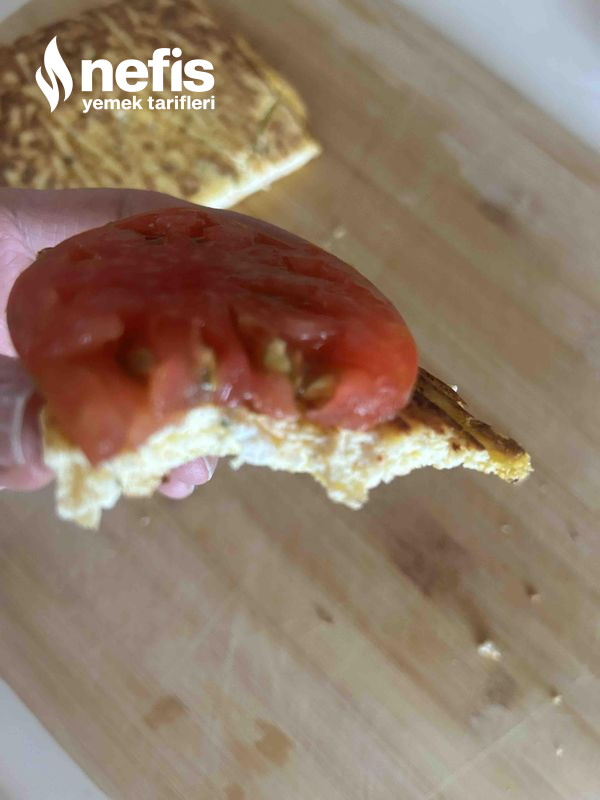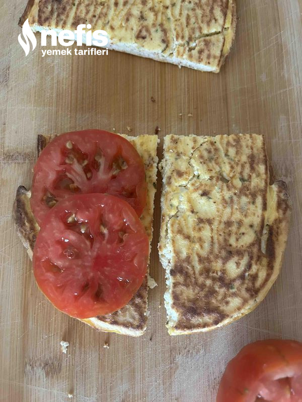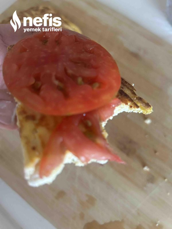 3. Soğuyunca ortasına, domates, salam, yeşillik koyarak servis edelim.